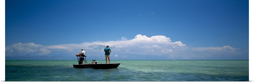 <p>Rear view of a couple fishing in the sea, Islamorada, Florida Keys, Monroe County, Florida, USA</p>