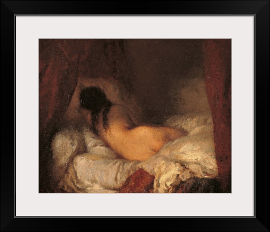 <p>Reclining Female Nude, by Jean-Franois Millet, 1844 - 1845, 19th Century, oil on canvas, cm 33 x 41 - France, Ile de France, Paris, Muse dOrsay, RF2049. All. Young woman room bed blanket pillow sheet curtain red white back. (273051) Everett Collection\Mon</p>