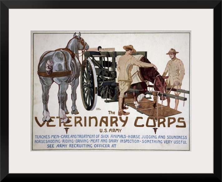 <p>Recruiting poster advertising the Veterinary Corps of the U.S. Army. Lithograph by Horst Schreck, 1919.</p>