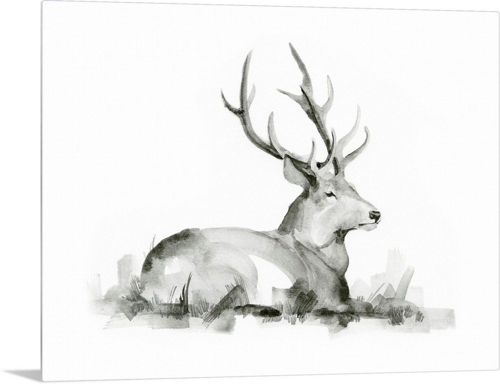 Art Decorative Art Jacob Green Grey Wall Art Painting Watercolor Wildlife Deer