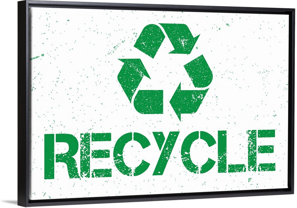 <p>Recycle written in green with the symbol above, in a grunge finish</p>