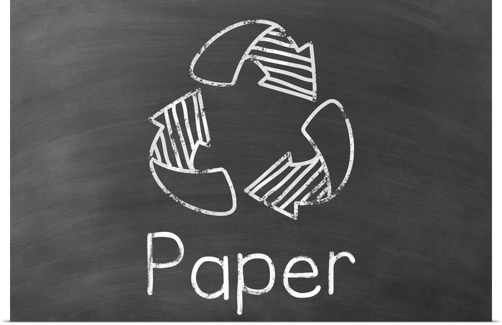 <p>Recycling symbol with "Paper" written underneath in white on a black chalkboard background.</p>