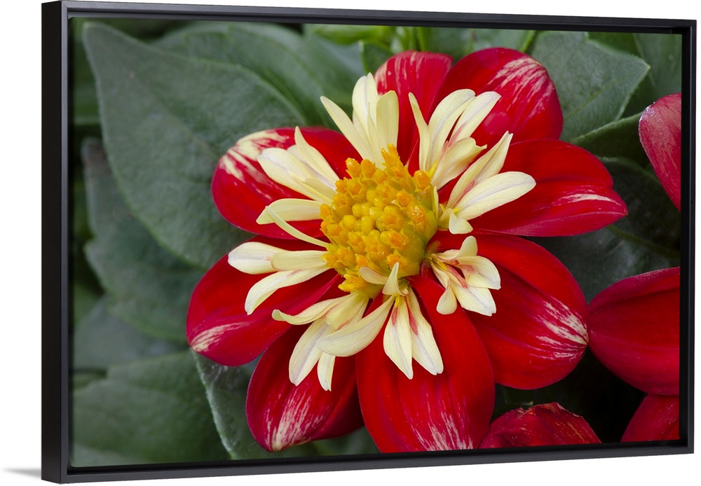 <p>Red and yellow Dahlia blossom</p>