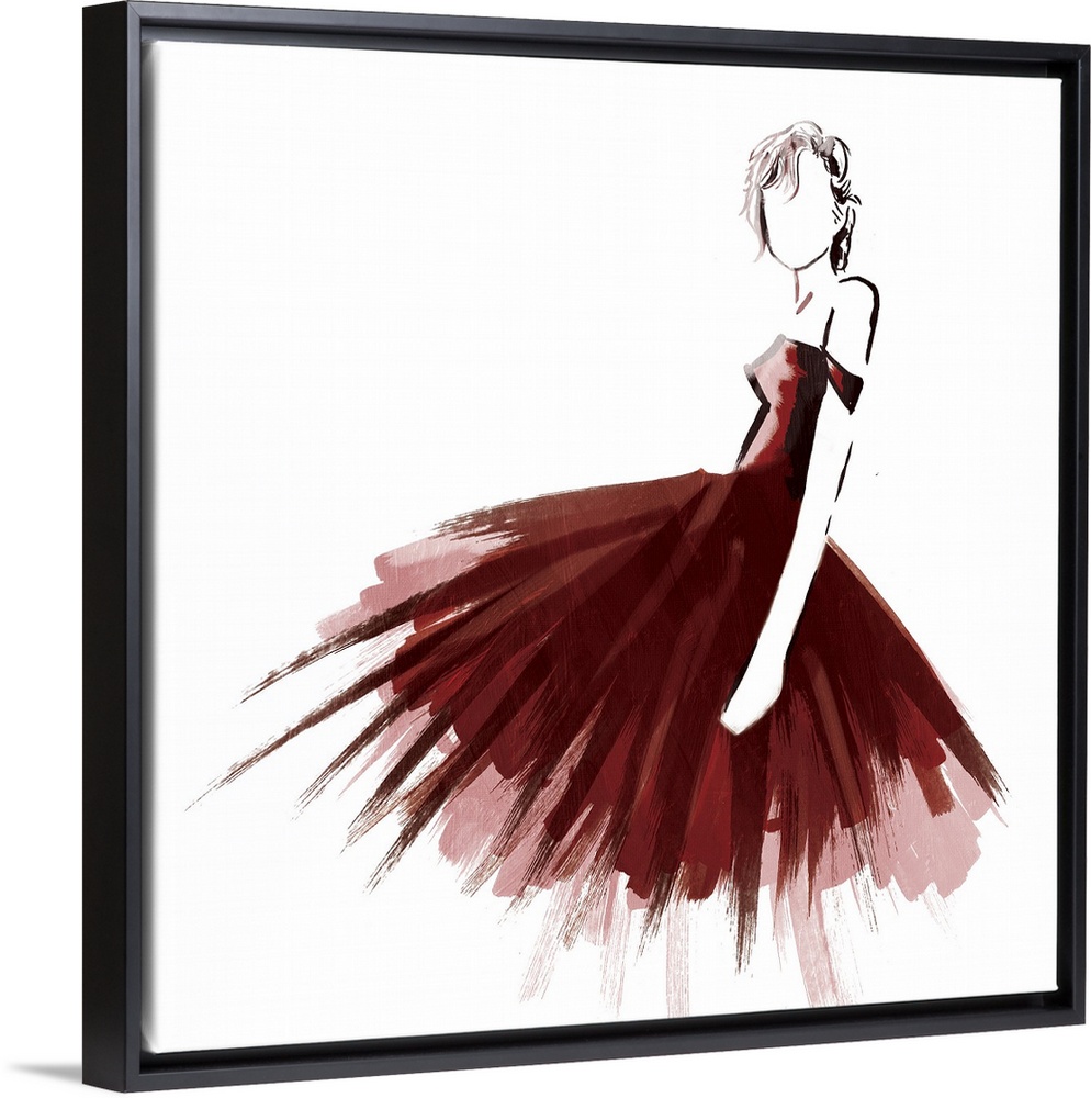 <p>Square illustration of a woman wearing a deep red dress.</p>