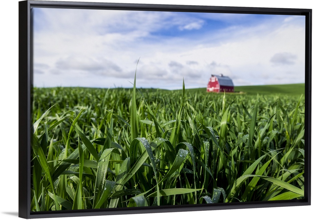 <p>Red barn and wheatfields in the Palouse</p>
