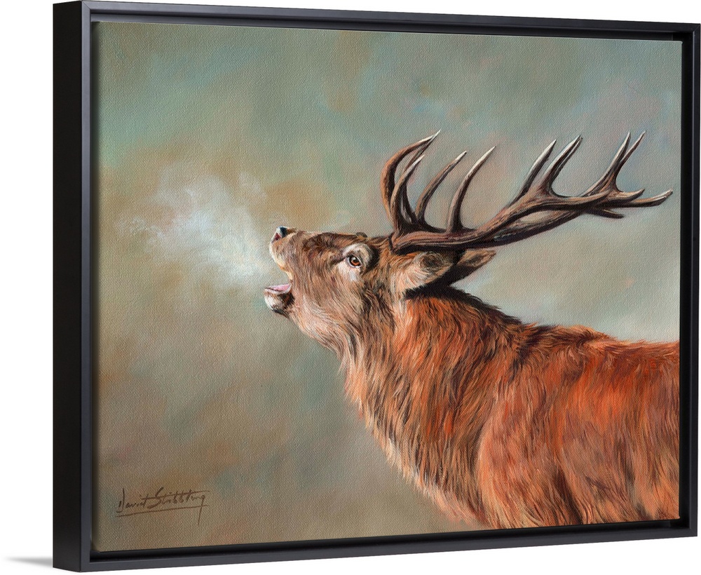 <p>Contemporary painting of a red deer stag in the early morning.</p>