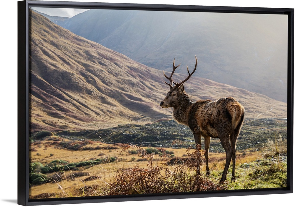 <p>Red Deer (Cervus Elaphus) standing proud in a Scottish glen; Scotland</p>