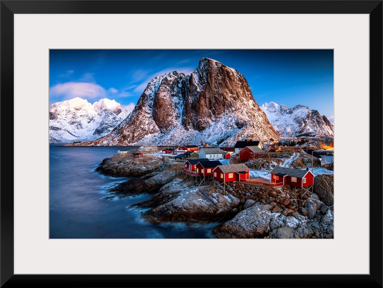 <p>Red Fishing Cabins At Hamnoy, Lofoten Islands, Norway</p>
