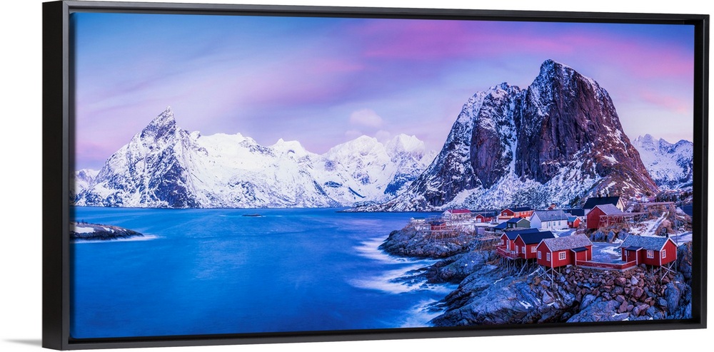 <p>Red Fishing Huts At Hamnoy, Lofoten Islands, Norway</p>