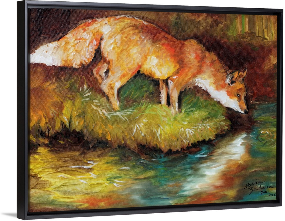 <p>Contemporary painting of a fox about to drink from a flowing river, created with an impressionistic look.</p>