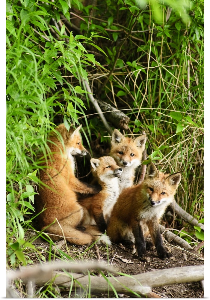 <p>Red Fox Kits Playing Close To Their Den During Summer In Alaska</p>
