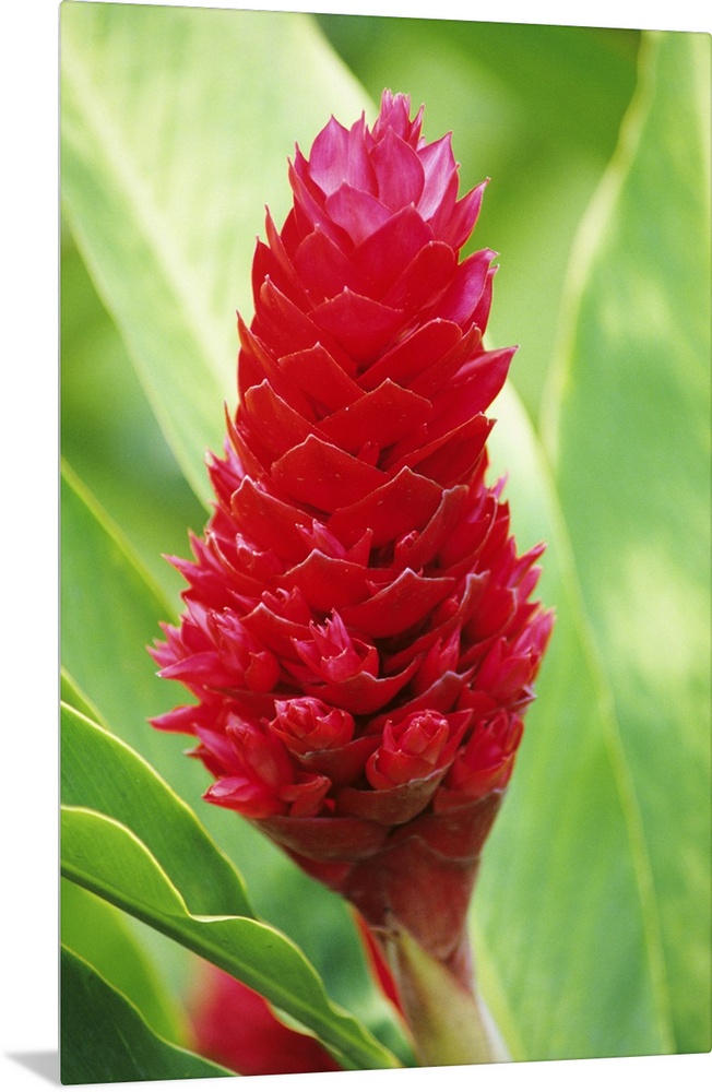 <p>Close-up of beautiful red ginger flower with soft focus and blurry background</p>