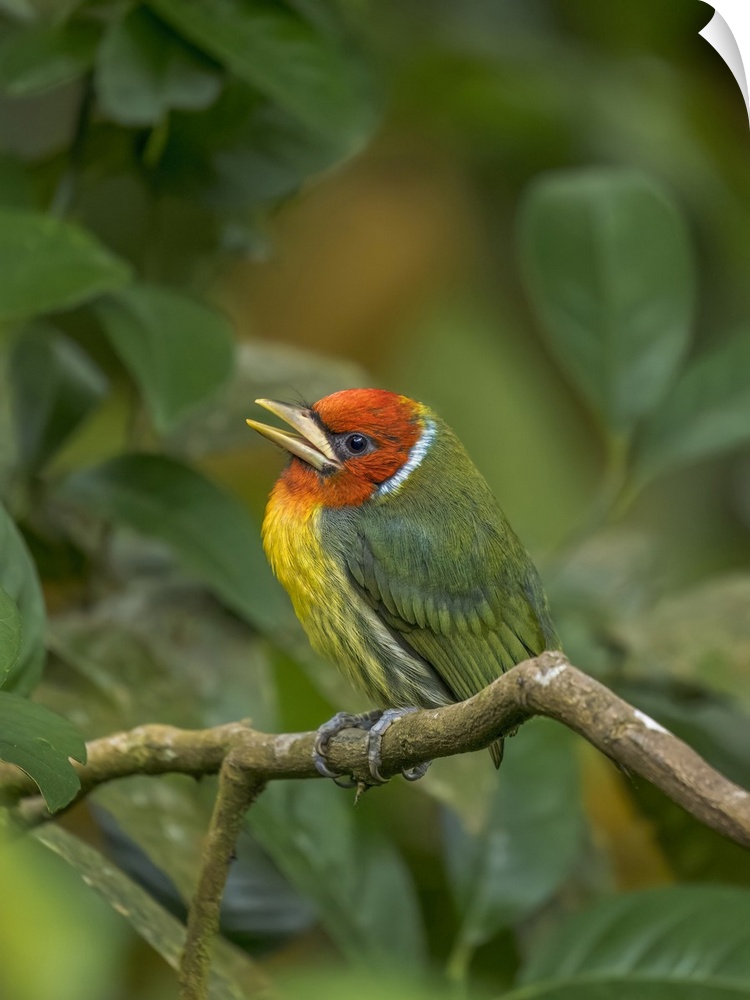 <p>Red-headed Barbet (Eubucco bourcierii), Cloud Forest region, Alajuela Province, Costa Rica.</p>