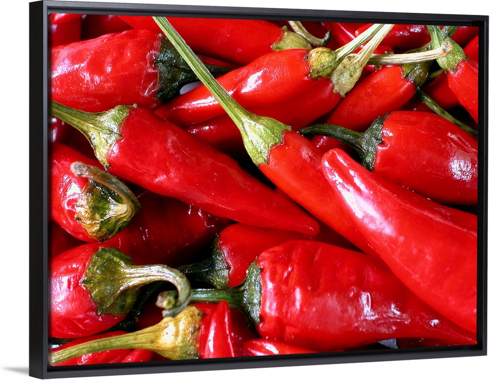 <p>A batch of chili peppers are photographed very closely.</p>