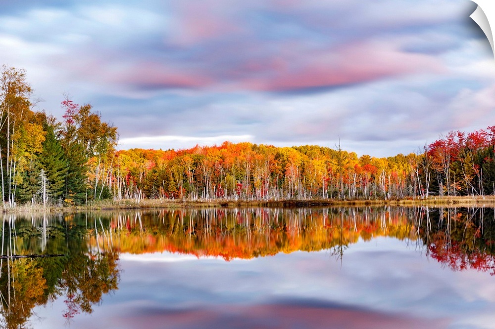 <p>Red Jack Lake and sunrise reflection, Alger County, Upper Peninsula of Michigan.</p>