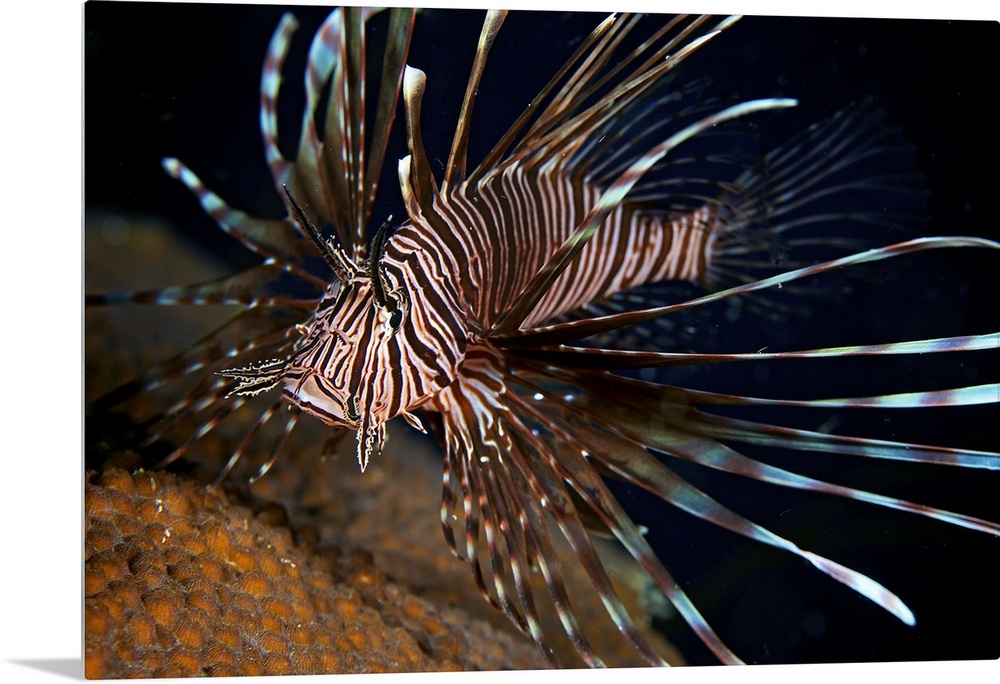 <p>Red Lionfish flares its deadly spines as a warning to the photographer not to get any closer, Bonaire, Caribbean Netherlands.</p>