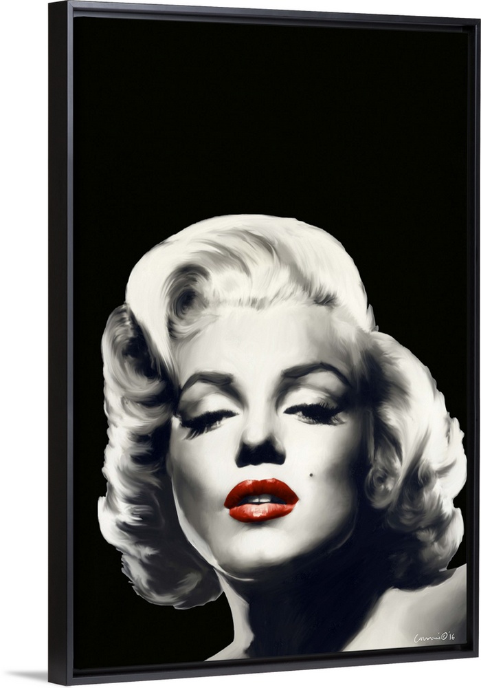 <p>Black and white digital art painting of Marilyn Monroe with red lips.</p>