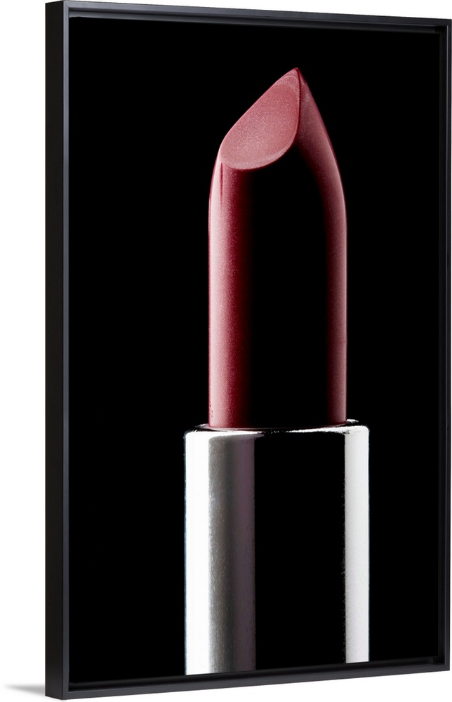 <p>Red lipstick against black background, close-up</p>