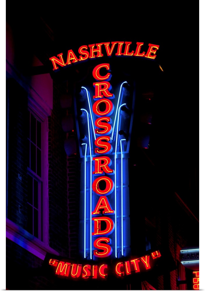 <p>Red Neon Sign Nashville Crossroads, Music City, Lower Broadway Area, Nashville, Tennessee, USA</p>