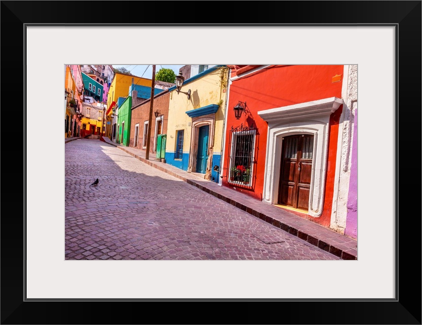 <p>Red Pink Colorful Houses Narrow Street Guanajuato Mexico.</p>