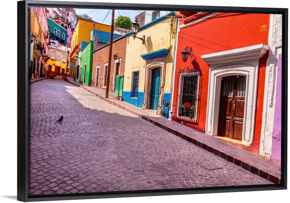 <p>Red Pink Colorful Houses Narrow Street Guanajuato Mexico.</p>