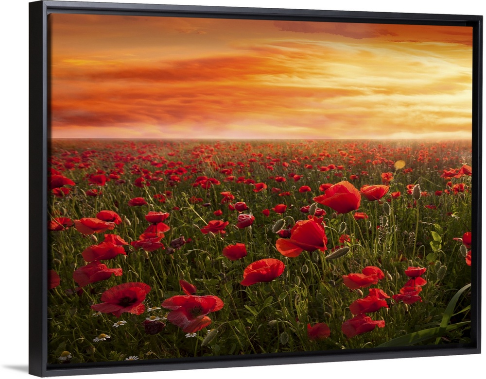 <p>During the spring in Tuscany it is easy to find huge fields of poppies. What makes the photo unique is the beautiful sunset behind the poppy field which colors the whole scene with colors ranging from yellow to intense red.</p>