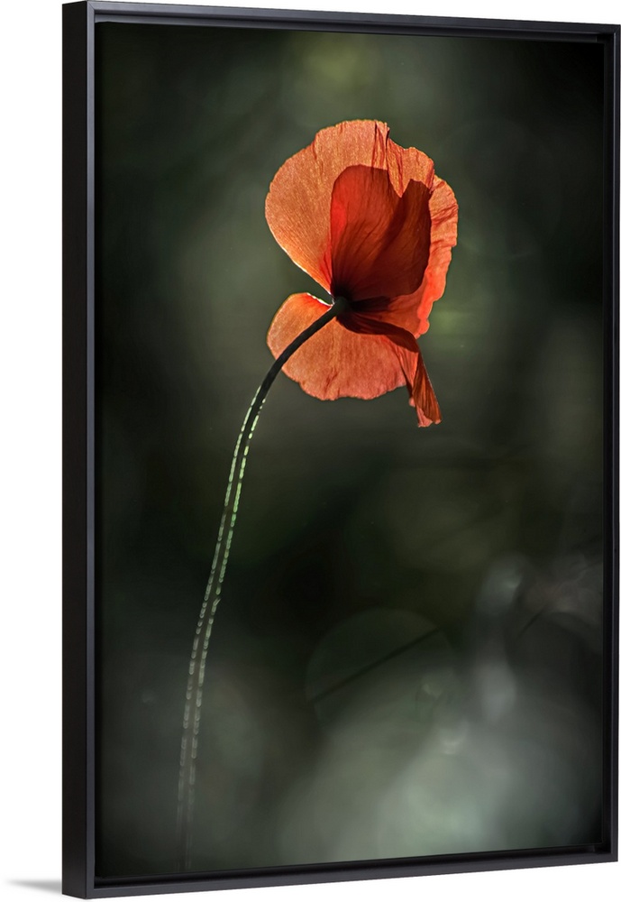 <p>Fine art photo of a single red poppy rising up against a bokeh background.</p>