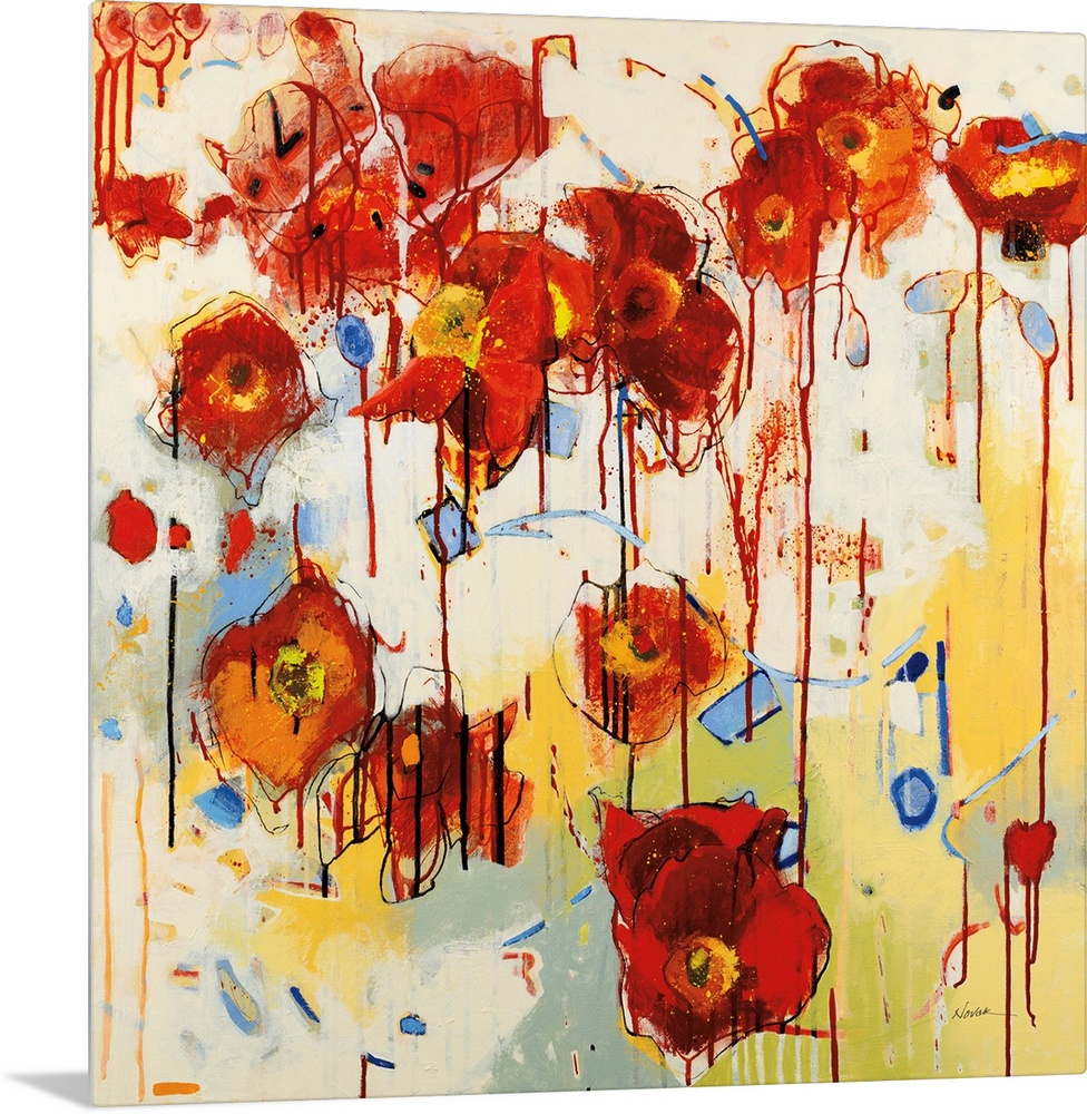 Art Contemporary and Modern Contemporary Art Florals Revisited Florals Shirley Novak Painting Red Wall Art