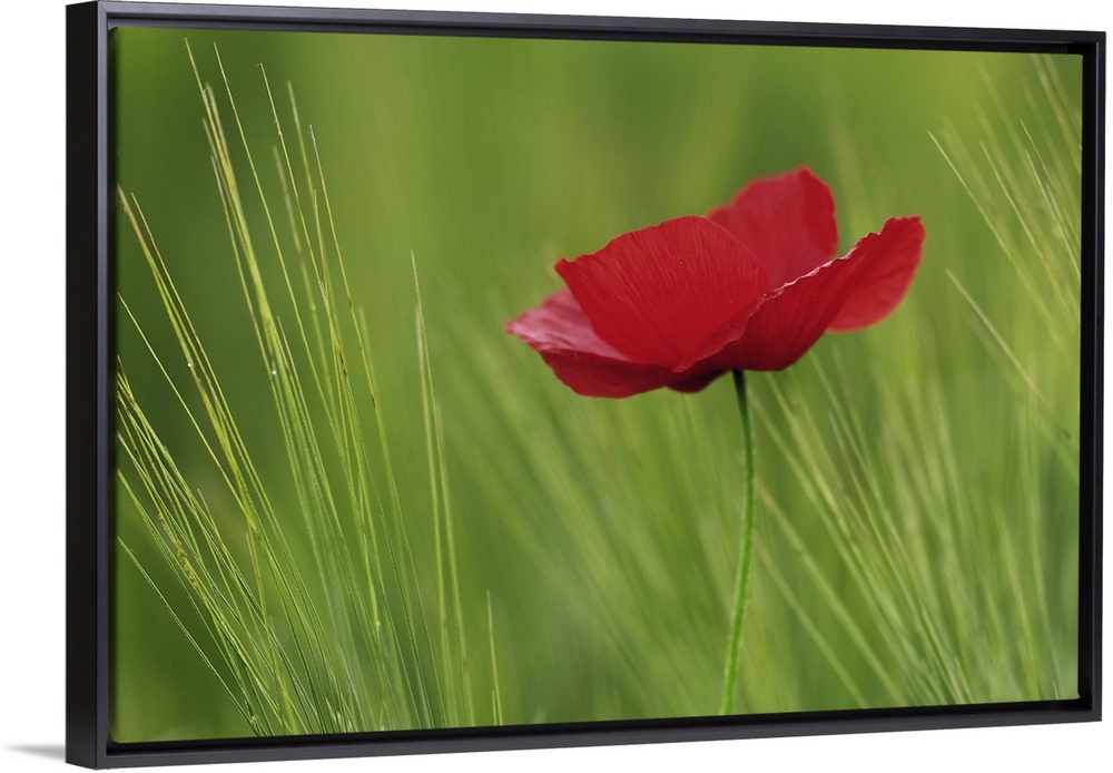 <p>Red poppy flower among wheat crop, Tuscany, Italy</p>