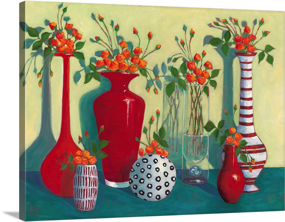 Art Contemporary Art Florals Green Wall Art Leslie McCarron Painting Red Wall Art Still Life