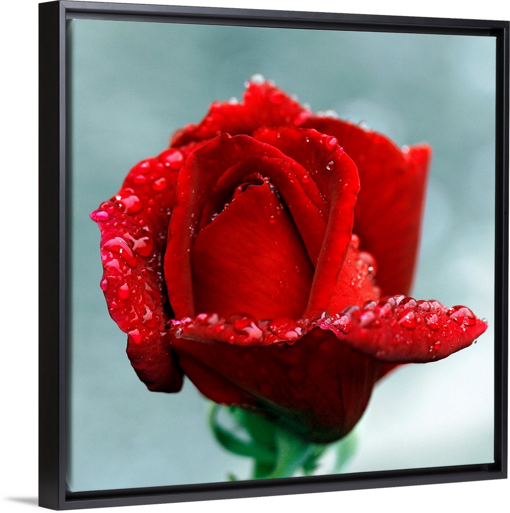 <p>Close-up of red rose with raindrops, Tintury, Bourgogne, France.</p>