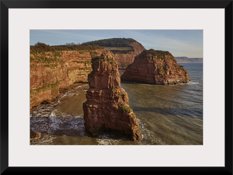 <p>Red sandstone cliffs and rocks at Ladram Bay, in the Jurassic Coast UNESCO World Heritage Site, near Budleigh Salterton, East Devon, England, United Kingdom, Europe</p>