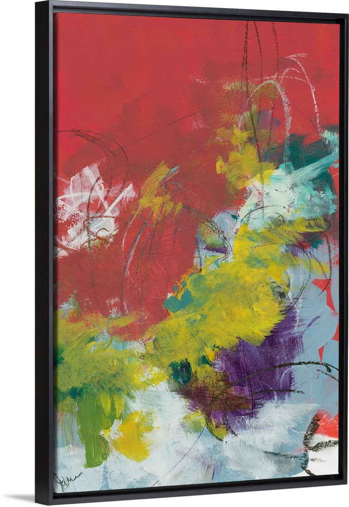 <p>Abstract contemporary artwork of quick brushstrokes in yellow, red, and purple.</p>