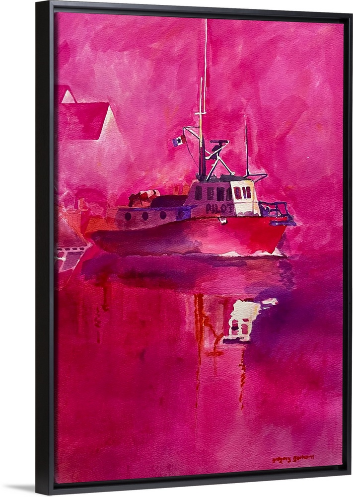 Art Contemporary Art Rivers, Lakes, and Oceans Gregory Gorham Sunset Painting Pink Wall Art Transportation Boat