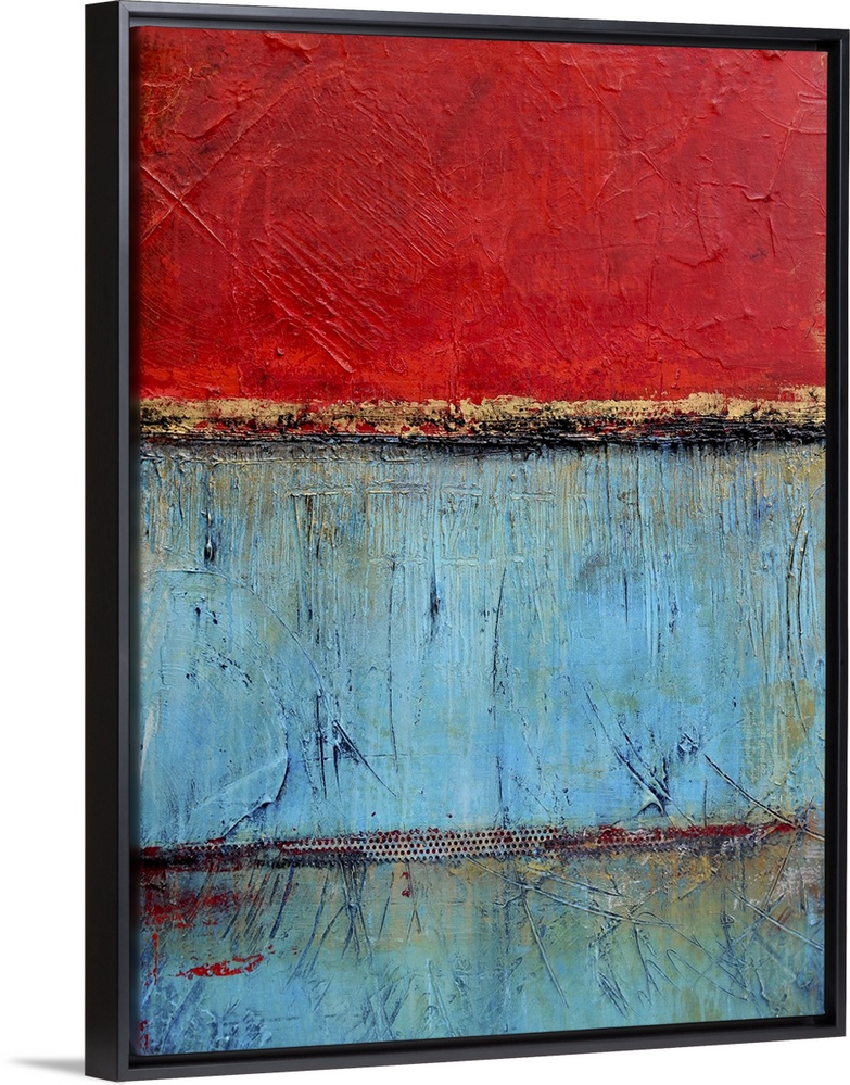 <p>Contemporary abstract painting using bright red and blue contrasting with each other.</p>