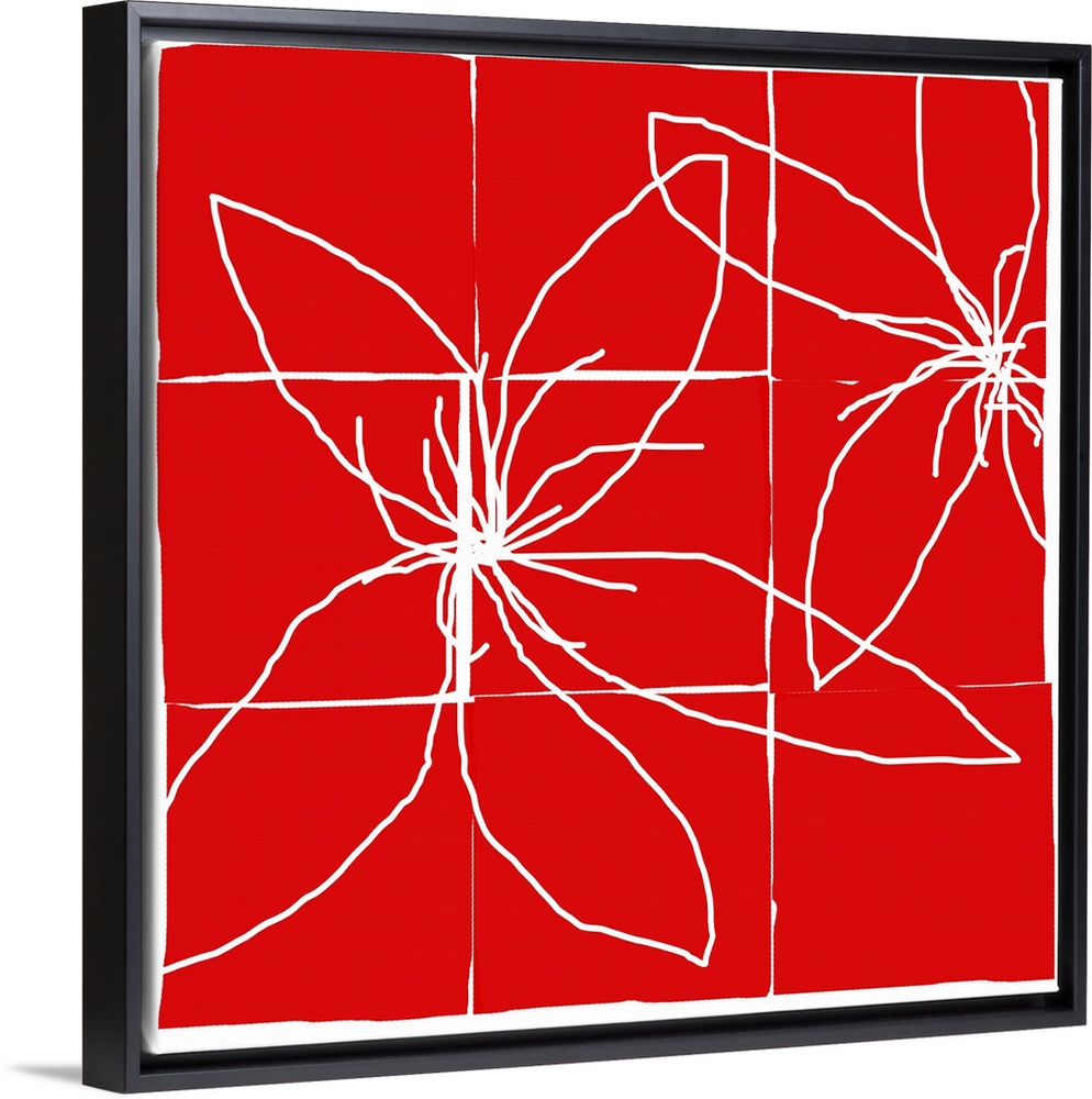 <p>This digital artwork shows nine tiles placed together to create a highly contrasting image the line drawing of two abstract flower blossoms.</p>