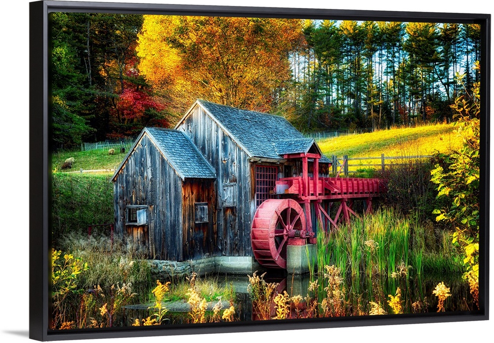 <p>Fine art photo of an old water wheel in the fall in New England.</p>