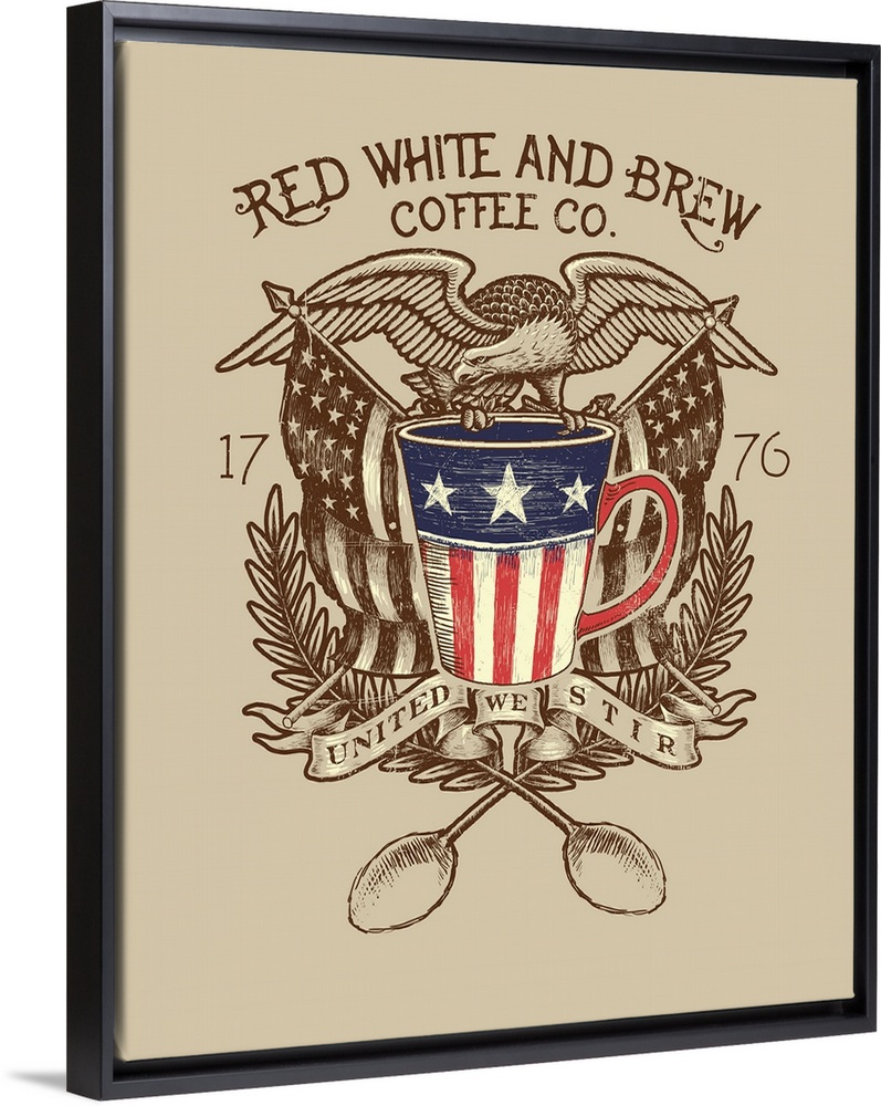 <p>"Red, White and Brew Coffee Co. United We Stir"</p>