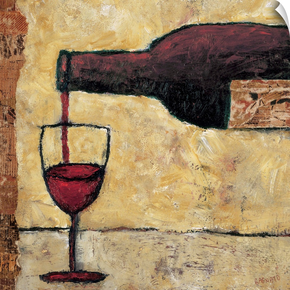<p>Contemporary painting of a glass of red wine being poured.</p>