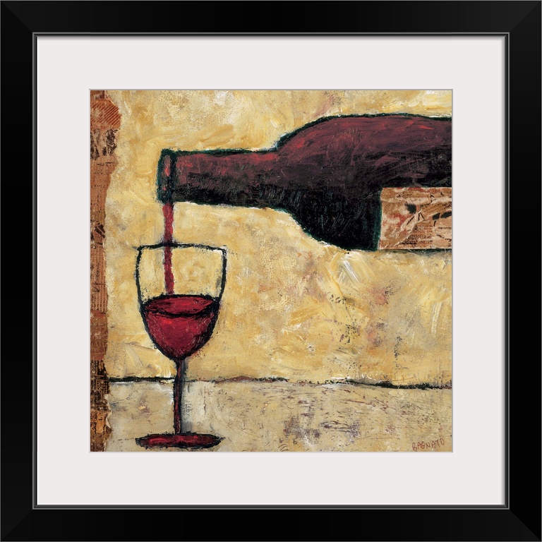 <p>Contemporary painting of a glass of red wine being poured.</p>