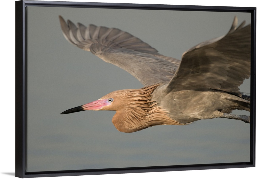 <p>reddish egret (Egretta rufescens), Headshot, Flight, Fort Desoto, Florida</p>
