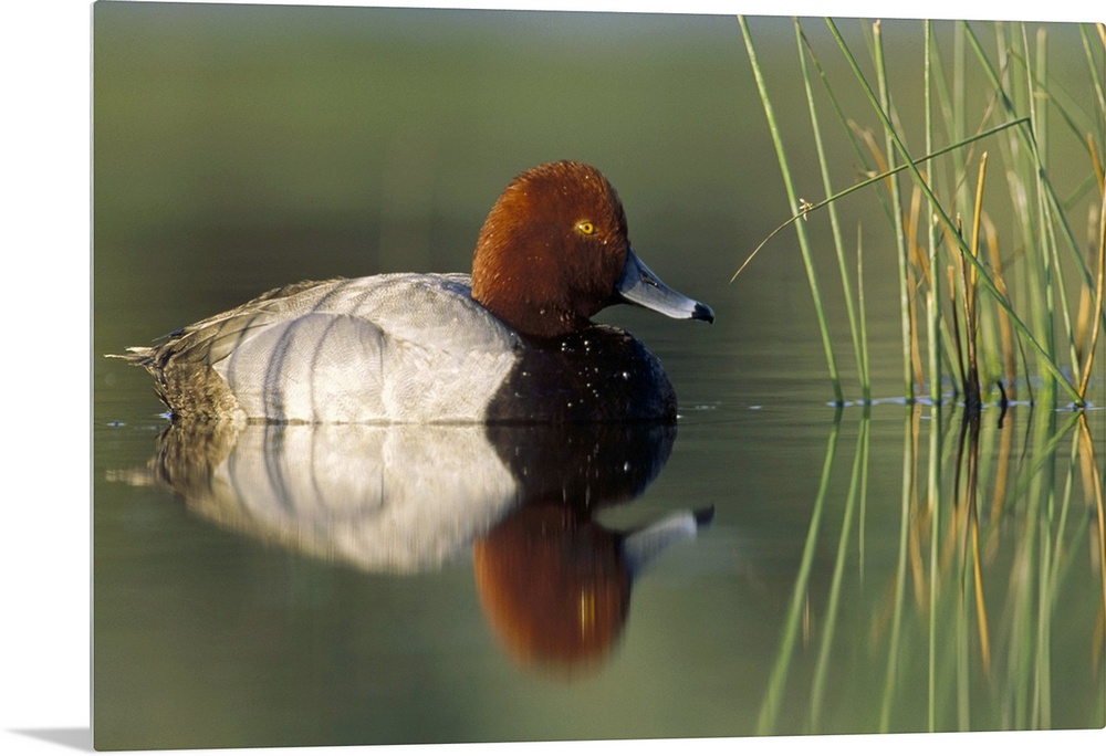 <p>Redhead Duck (Aythya americana) male, portrait, Moses Lake, Washington</p>
