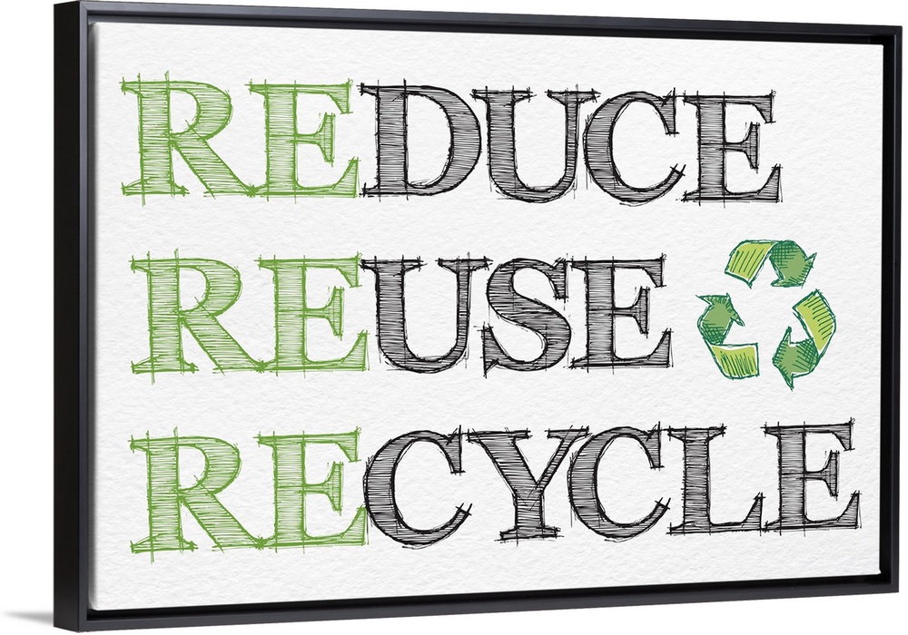 <p>Reduce Reuse Recycle sketched in black and green</p>