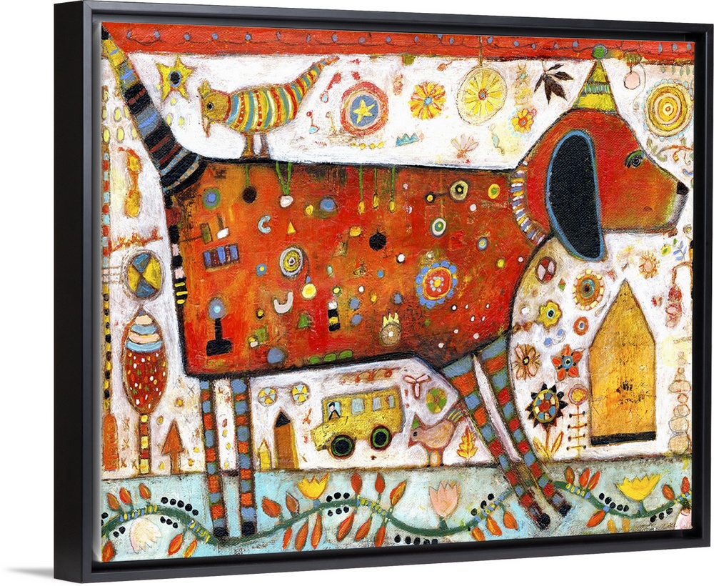 Art Contemporary Art Wildlife Folk Art Jill Mayberg Painting Red Wall Art Wildlife Dog