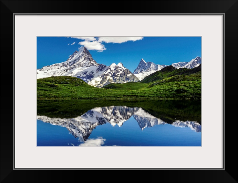 <p>Mountains of the Swiss Alps reflected in the lake Bachalpsee.</p>