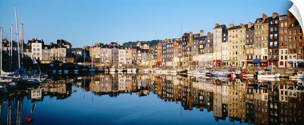 <p>Reflection of buildings in water, Honfleur, Normandy, Calvados, France</p>