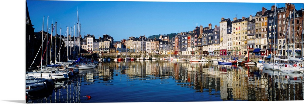 <p>Reflection of buildings in water, Honfleur, Normandy, Calvados, France</p>