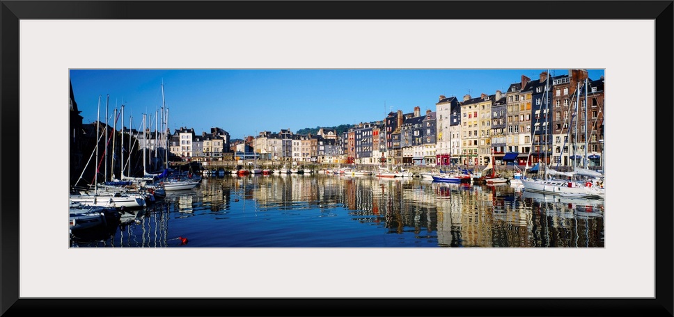 <p>Reflection of buildings in water, Honfleur, Normandy, Calvados, France</p>