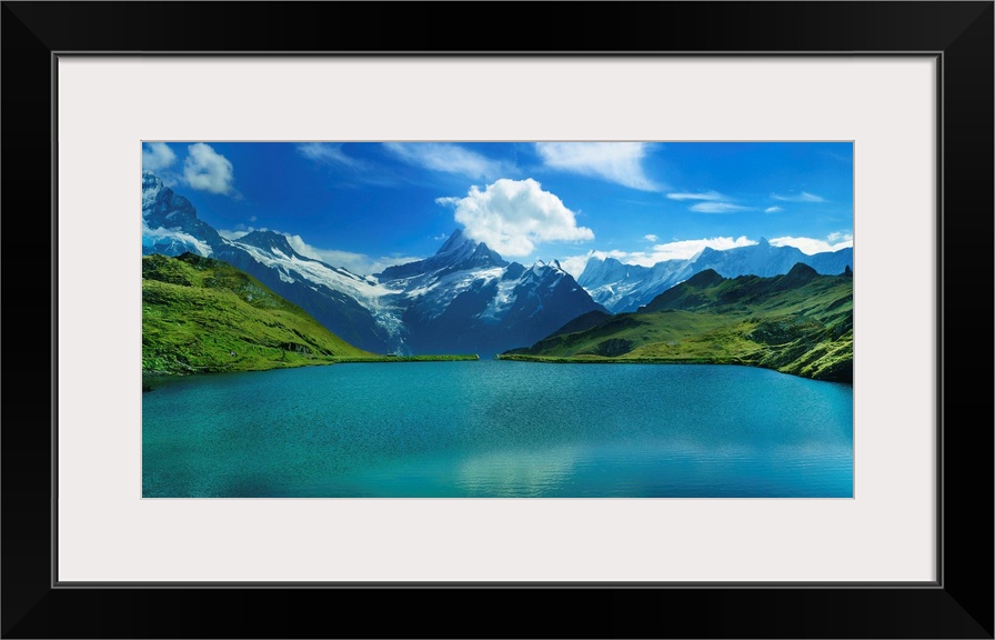 <p>Reflection of clouds and mountain in a lake, bachalpsee, grindelwald, bernese oberland, switzerland.</p>