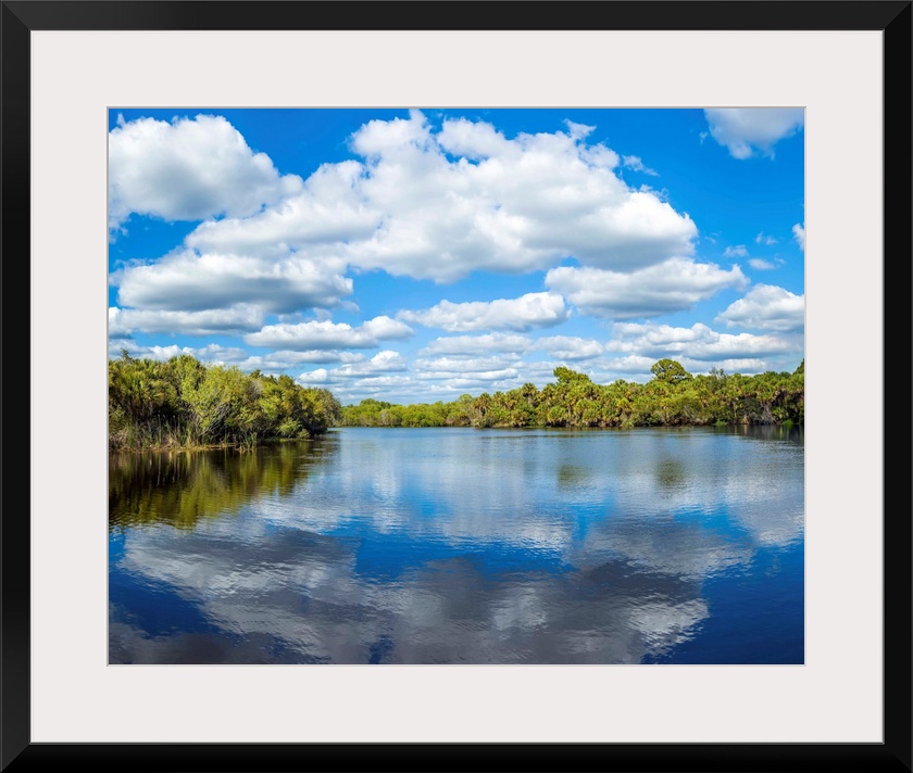 <p>Reflection of clouds on water, deer prairie creek preserve, venice, florida, USA.</p>